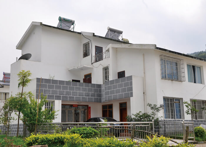 建筑形式上,采用傳統(tǒng)民居的院落形式。庭院是中國傳統(tǒng)民居的重要組成部分,其基本手段是圍合,表現(xiàn)形式是院落。庭院是中國人日常生活的基本場所。庭院代表的不僅是一種居住形式,更是一種情結(jié)。建筑可以是多層的并采取一樣的形制,院子可以做出形狀和大小不一的變化,通過這些變化就可以將內(nèi)、外、主、從等關(guān)系表達(dá)出來。設(shè)計中保留農(nóng)村傳統(tǒng)的堂屋、烤火間等居住形式,使居住在內(nèi)的村民產(chǎn)生強烈的歸屬感。