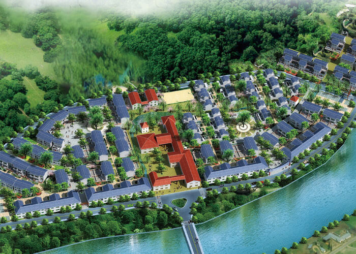 社會主義新農(nóng)村民居建設(shè),不是簡單地拷貝和復(fù)制中國傳統(tǒng)院落形式。運用于本案,我們不是在進(jìn)行仿古建筑的設(shè)計,我們摒棄過于復(fù)雜與太過傳統(tǒng)的斗拱、椽檁等建筑符號。抽取傳統(tǒng)院落中的白墻、青瓦、庭院等符號,重新融合構(gòu)置進(jìn)全新的建筑肌理之中,賦予現(xiàn)代院落以生命,使其融入現(xiàn)代生活,成為我們的生活中的一部分。在沿街的建筑設(shè)計中,采用聯(lián)排式、開敞式設(shè)計,形成一種商業(yè)氛圍,與環(huán)境設(shè)計中的廣場、露天舞臺等一起,服務(wù)于旅游,讓游客不止成為過客,讓游客留下來,有玩、有住、有看,有紀(jì)念品買。