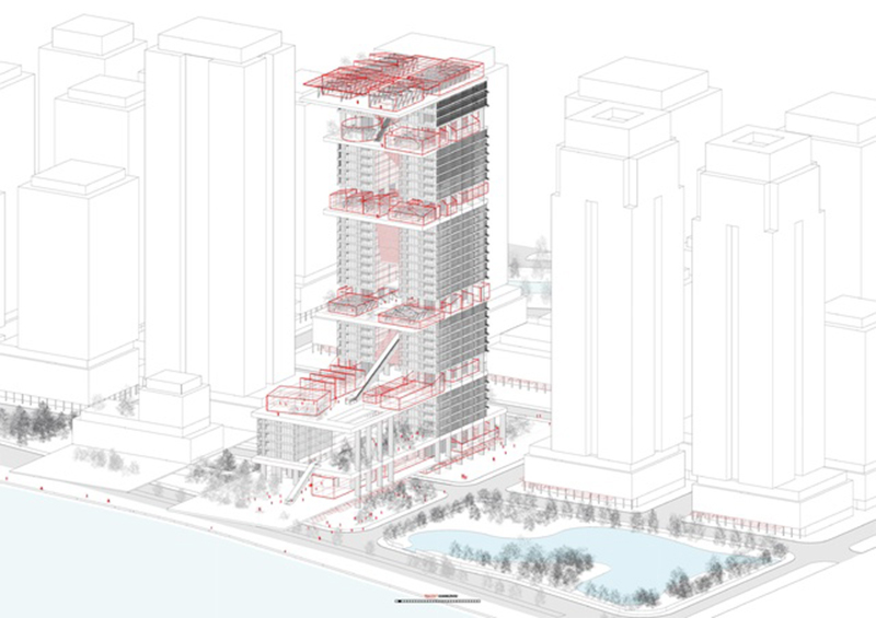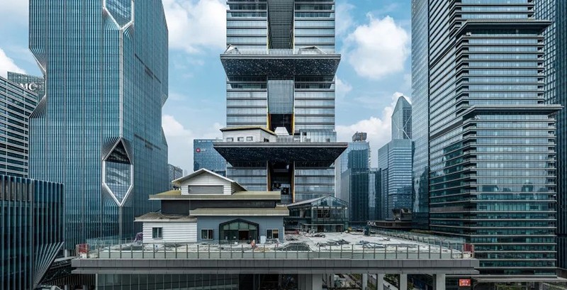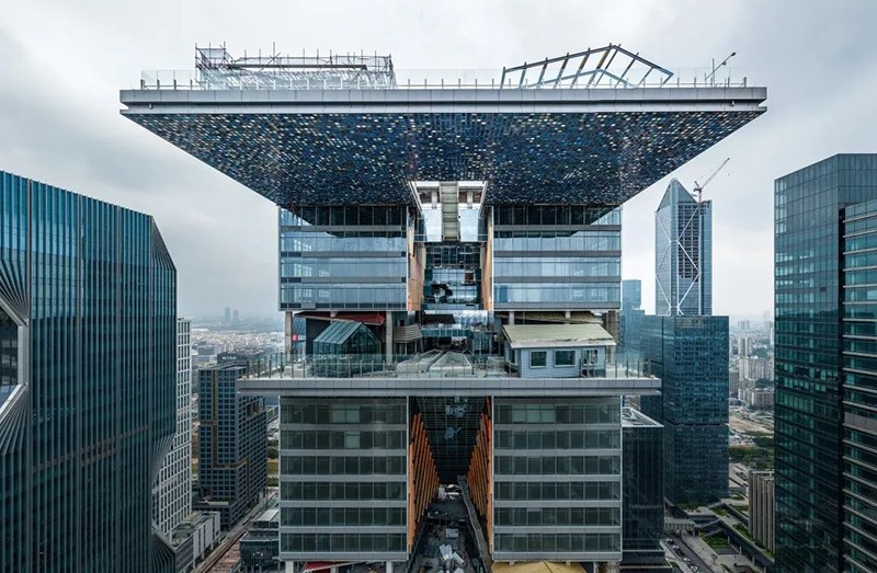 其標(biāo)志性設(shè)計包括4道單邊懸挑景觀平臺,形似“火箭發(fā)射臺”,創(chuàng)下國內(nèi)超高層直挑結(jié)構(gòu)首例。
