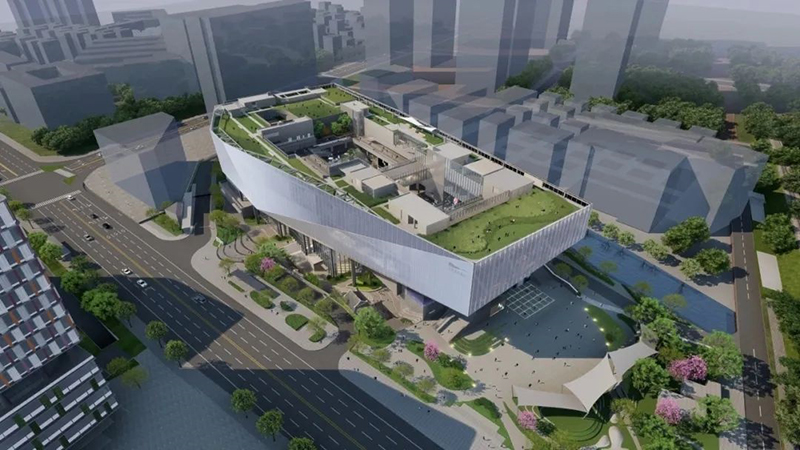 該項目位于深圳龍華區(qū),這座占地面積達(dá)31367平方米、建筑面積達(dá)83290平方米的文化地標(biāo),地上七層,地下兩層,建筑高度39.9米。整座建筑采用框架剪力墻結(jié)構(gòu)體系,巧妙結(jié)合了8核心筒、巨型桁架、鋼管混凝土結(jié)構(gòu)和型鋼混凝土結(jié)構(gòu),總用鋼量約1.12萬噸。