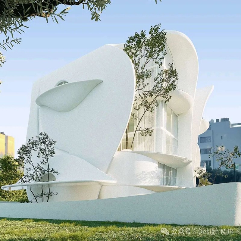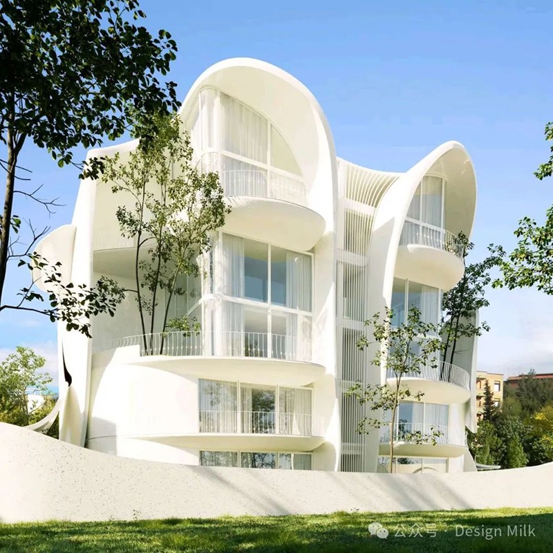 314 建筑工作室設(shè)計的新建筑以其雕塑形式和流暢的線條為特色,營造出一種運(yùn)動和活力的感覺。 建筑的正面以流暢的曲線和有機(jī)形狀為特征,類似于巨大、飄逸的窗簾或時間凝固的波浪。 這些元素賦予建筑一種柔軟和流動的感覺,與城市建筑中常見的剛性線條形成鮮明對比。