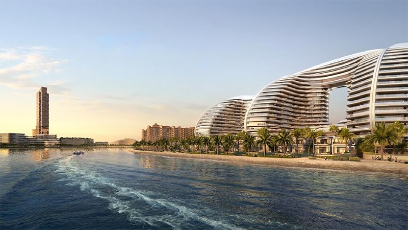 項目位于阿聯(lián)酋拉斯海瑪?shù)?Al Marjan 島,項目占地達128,000平方米,以一座20層雕塑感住宅塔樓為核心,沿阿拉伯海金色海岸線延展,將建筑美學與高端濱海生活完美融合。