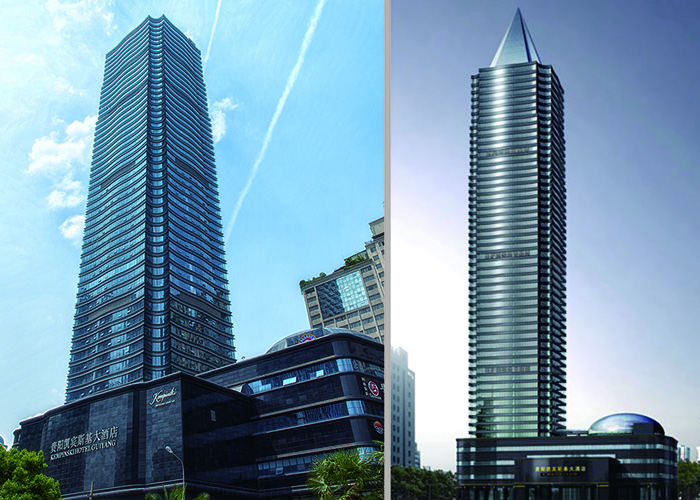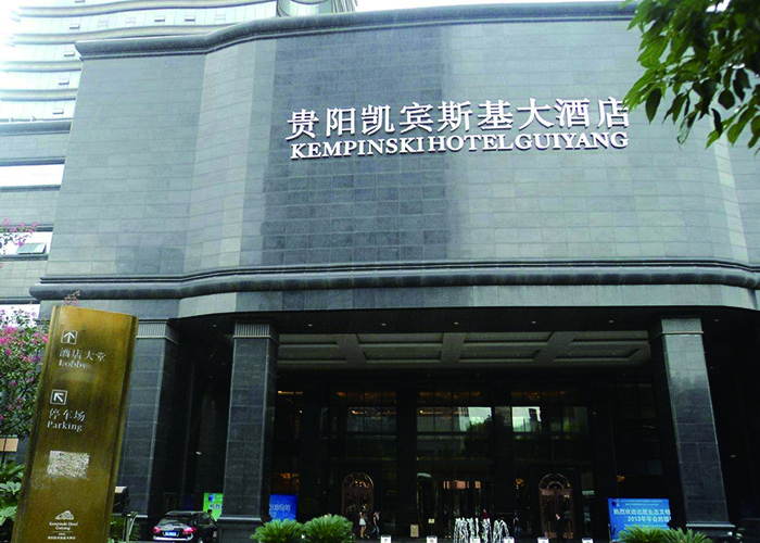 貴陽市凱賓斯基大酒店位于貴陽市護(hù)國路與指月街交接處,建設(shè)用地5740平方米,由塔樓、裙樓、地下室組成。其中塔樓為53層超高層建筑,總建筑面積約7.8萬平方米,設(shè)三層地下室,地下室埋深12.6M,塔樓與裙樓在地下室部分連接,本工程設(shè)有六層裙房、三層地下室,使用功能為設(shè)備用房、車庫、辦公、商場、餐飲娛樂;7層~26層為寫字間,28層~53層為酒店;14層、27層、40層為避難層;層面標(biāo)高自地面以上為212.0M,根據(jù)貴陽地震設(shè)防烈度低、基礎(chǔ)持力層承載力大的特點(diǎn),采用鋼筋混凝土框筒結(jié)構(gòu),其中框架柱通過設(shè)置芯柱有效減小柱截面。